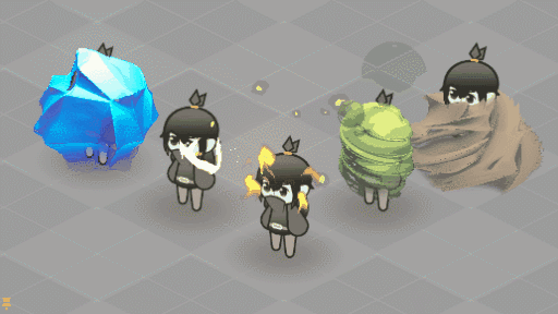 I made these with the same shader I used to create the waterball. The “ice”, “dirt”, and “poison” are raymarched, but the “electricity” and small “flames” are normal 2D SDF trickery.