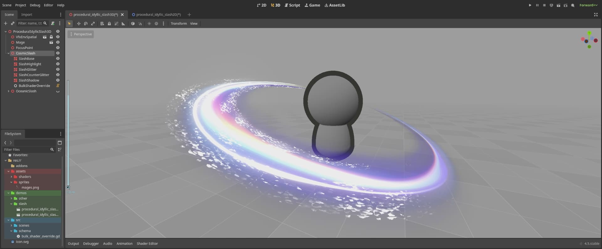 As usual, these are made procedurally. The shader running these slash effects was designed using the information I learned from this amazing video.