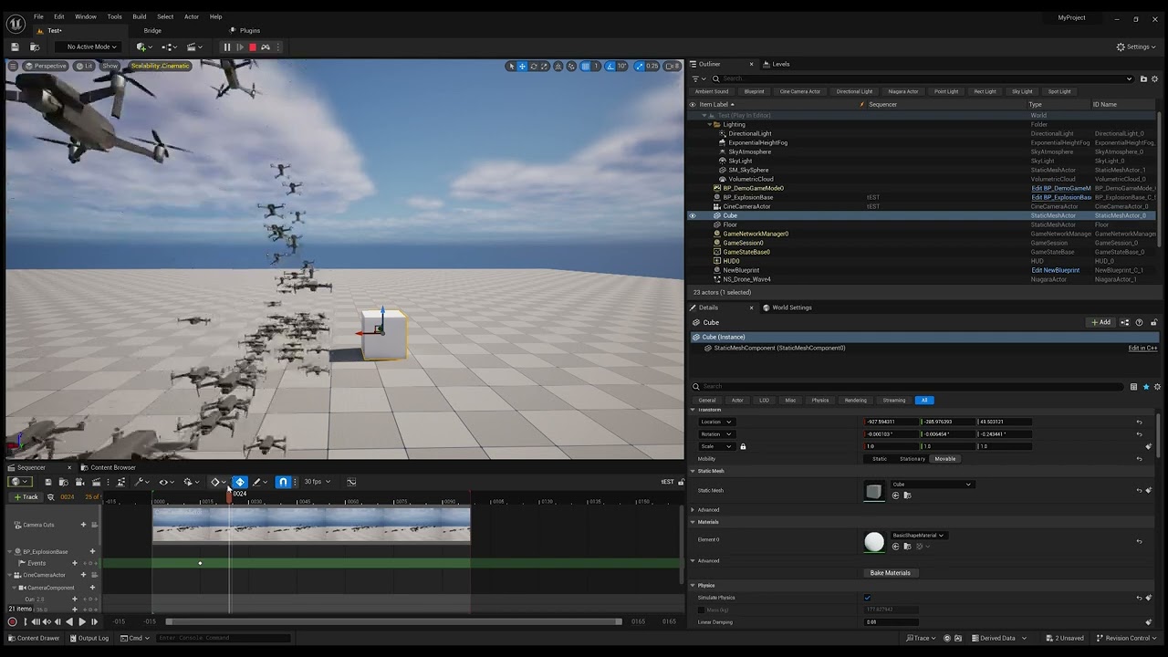 I have a group of meshes (drones) spawned in the scene following a specific course. I would like to modify the course of those drones from a radial force triggered inside an “explosion” blueprint.