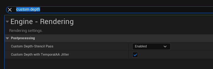 Step 2. Check if custom depth is enabled in project settings, cause it might not be.