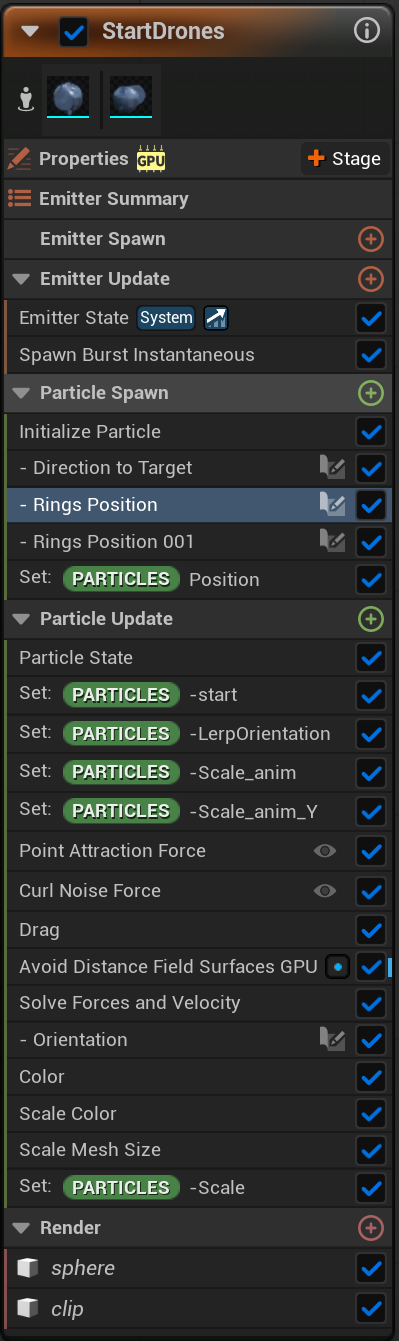 I just decided not to overload the effect with the drones disappearing. Niagara with drones contains all the drone actions: gunshots, explosions, sparks, and smoke. It seemed to me that Niagara already had enough going on. A good way to make the drones disappear would be to create a bit of electricity around the body, sparks, and pieces of metal that fly off during the explosion, and do them one at a time, not all at once.