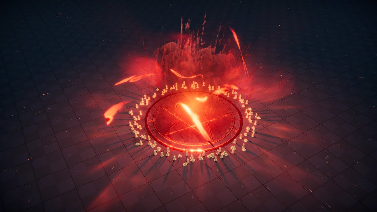 Anyway, this was a good excuse to experiment with Embergen again, this time I baked two parts of the same simulation onto separate spritesheets and projected them on meshes to avoid it from looking too flat.