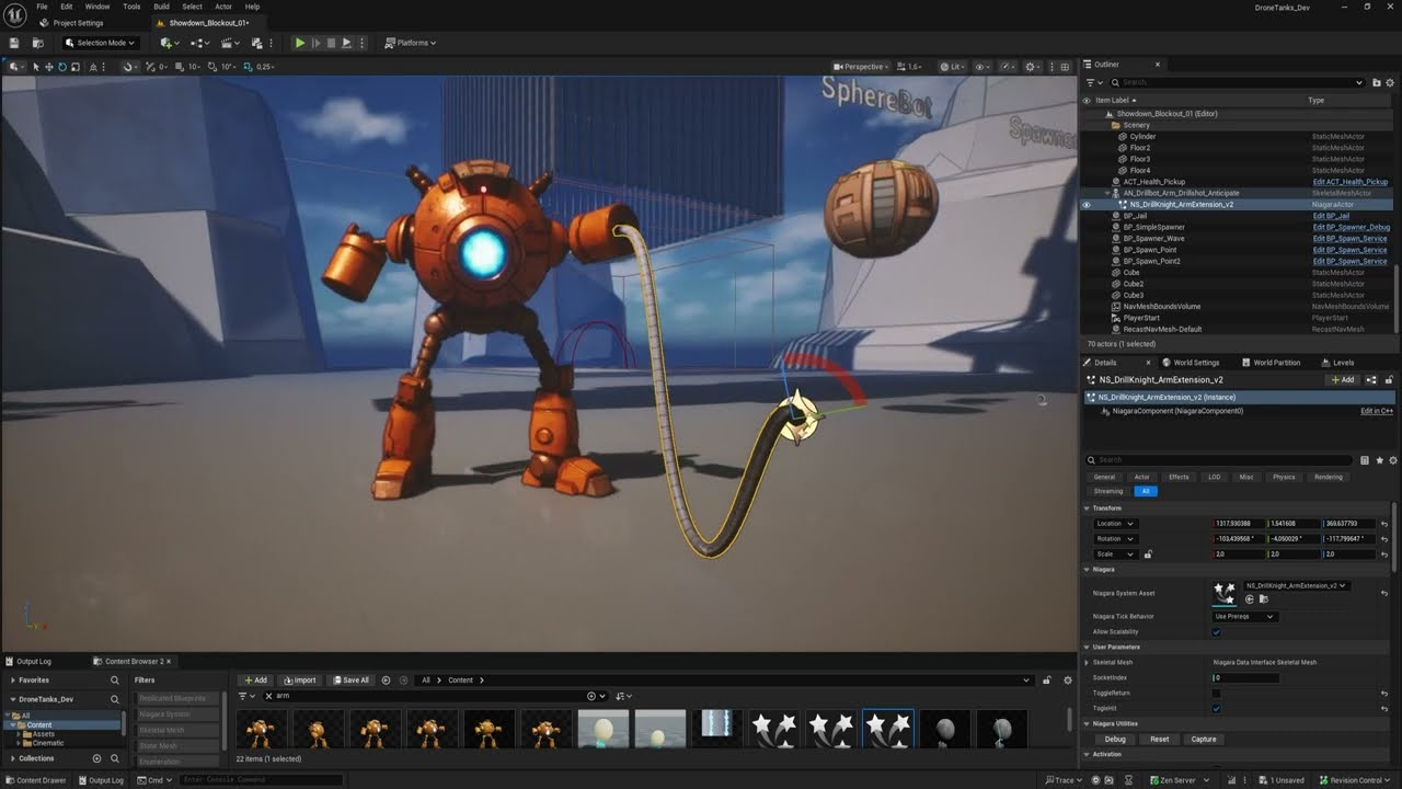 This effect is purely Niagara ribbons and works fully on the GPU. and is working with Distance Fields collisions and some animated curves for when it shoots out and gets pulled back in and custom bezier logic