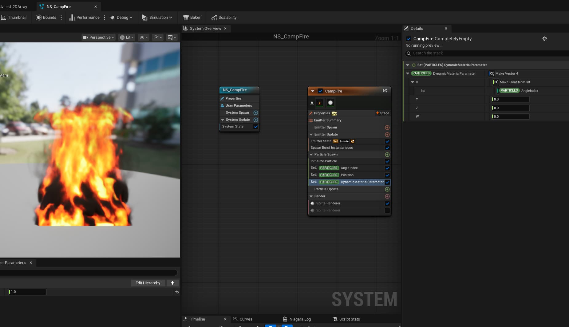 Build a fully optimized, multi-view realistic campfire system in Niagara — scalable to hundreds of instances at 60 FPS.