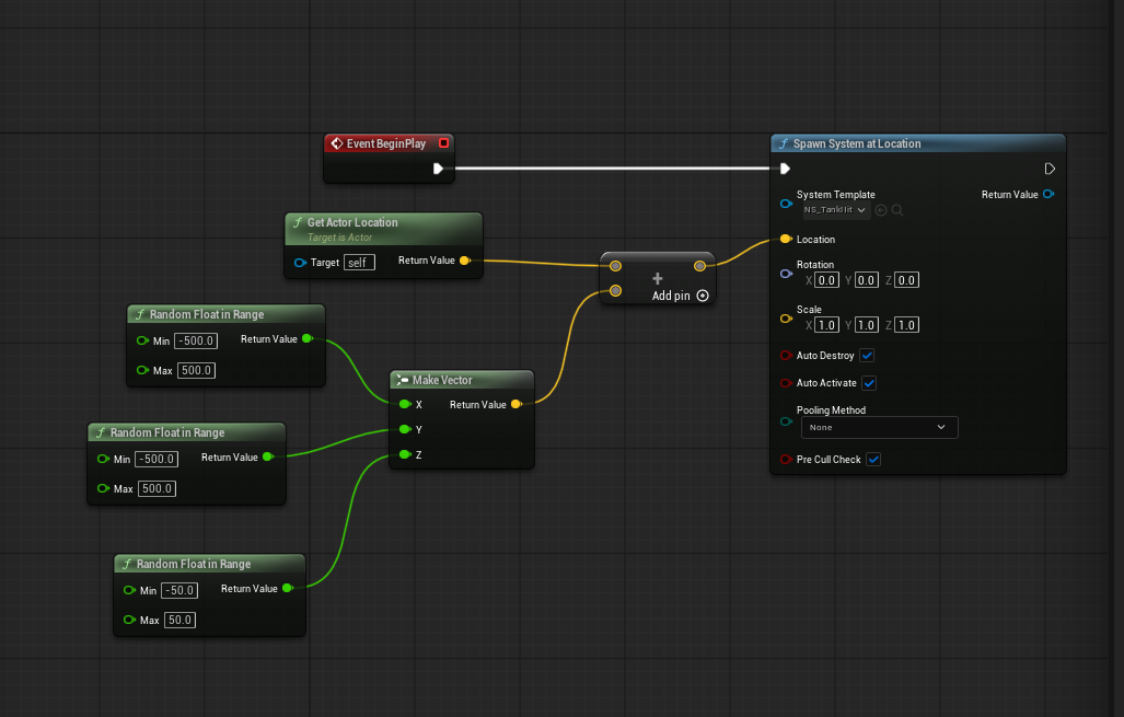 Basically the topic is the question - i have a nigara system which I need to spawn on the level at random location, like -500 to 500 at all axis. I set up this login inside BP, but for some reason it’s not working at all.