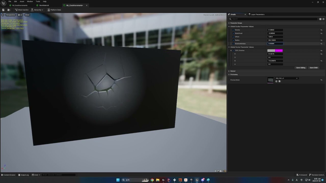 I can make with single bullet position by using dynamic parameter but if there’s multiple bullet is hit, how to draw radial mask from each bullet hitted position?