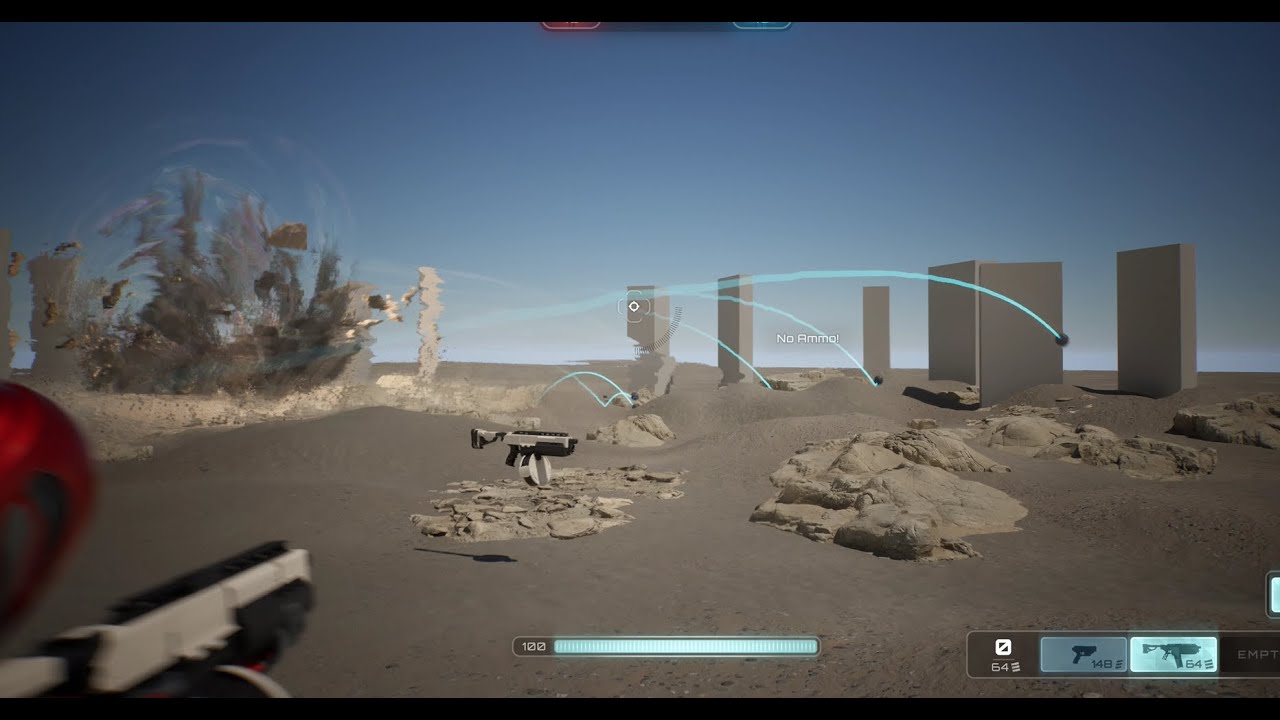 I’ve been using Lyra starter game for prototypes for some time now, so I filled the scene a bit with geometry from megascan that would be immediately oriented to the final version of the color and shapes. I duplicated the shotgun that I now use as a grenade launcher.