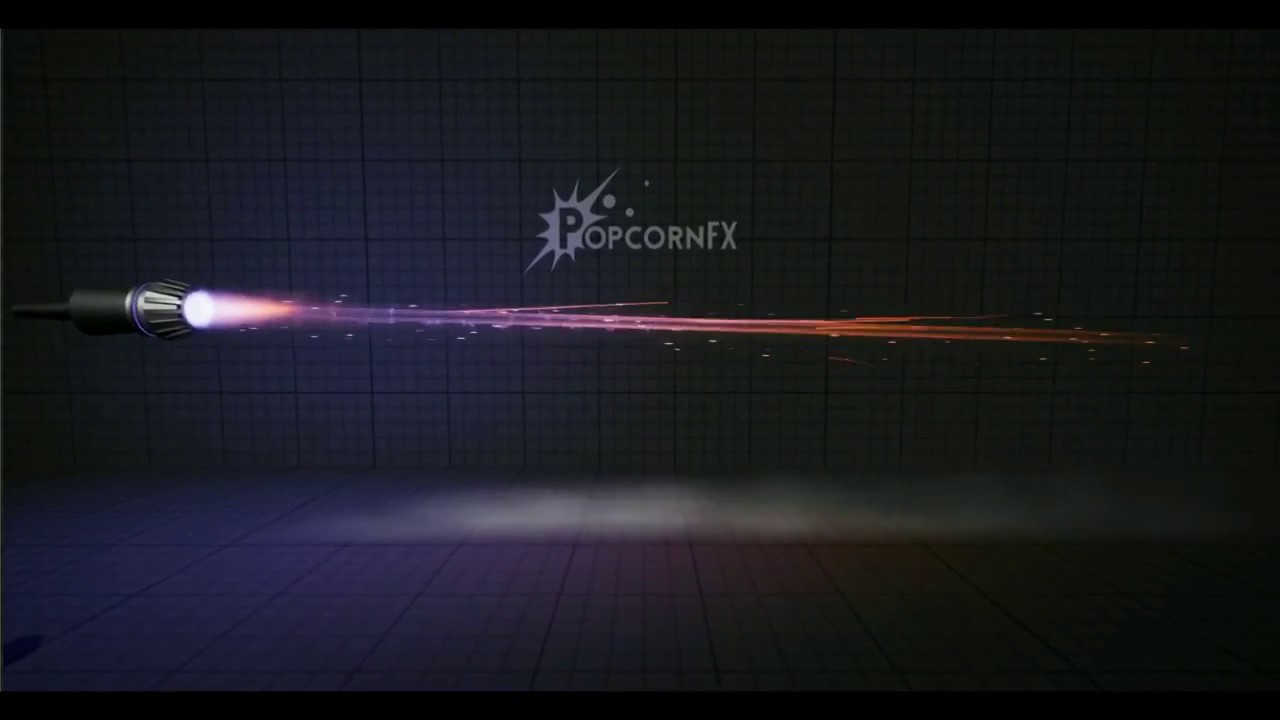 This particles die on contact, and in PopcornFx, the grid has collider so we can see directly how events based on collision will change your effect.