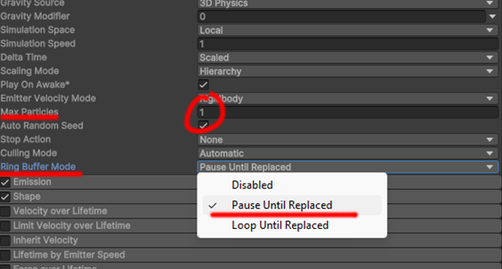 This tells Unity to pause the particle instead of respawning it.