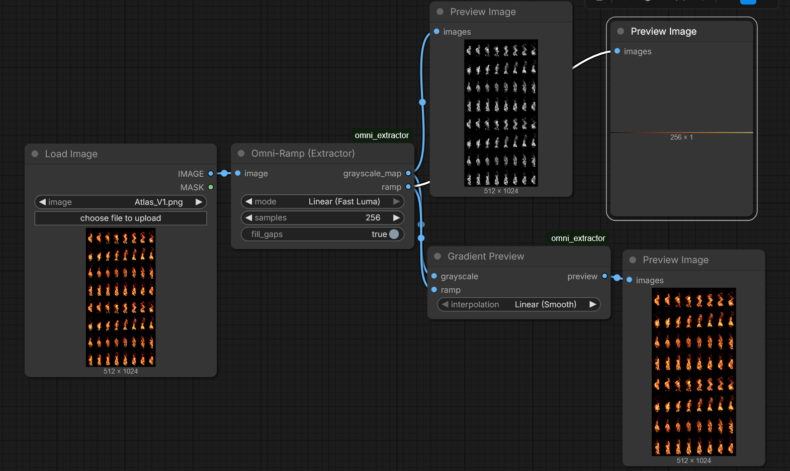 That’s where the Omni-Extractor can help — even as a completely “dumb” automation tool. Just throw your texture at it, and it’ll spit out a clean luma map and a perfectly matched ramp automatically. No more manual masking or color picking.