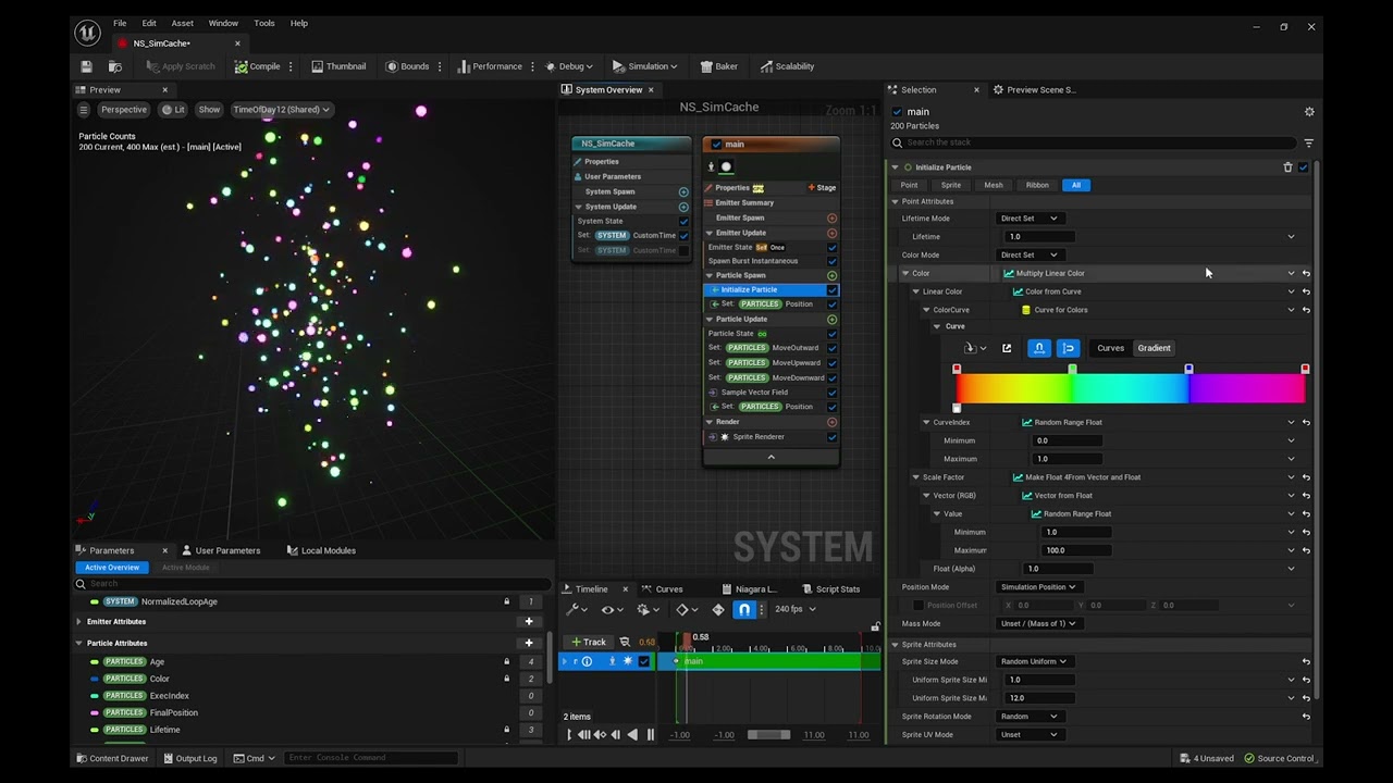 Long answer: There doesn’t seem to be any official resources or example project of Niagara Simulation Cache so it’s all but a black box. I am not an Epic TA or familiar with any, so I just don’t have the time and resource to decipher something like that.
