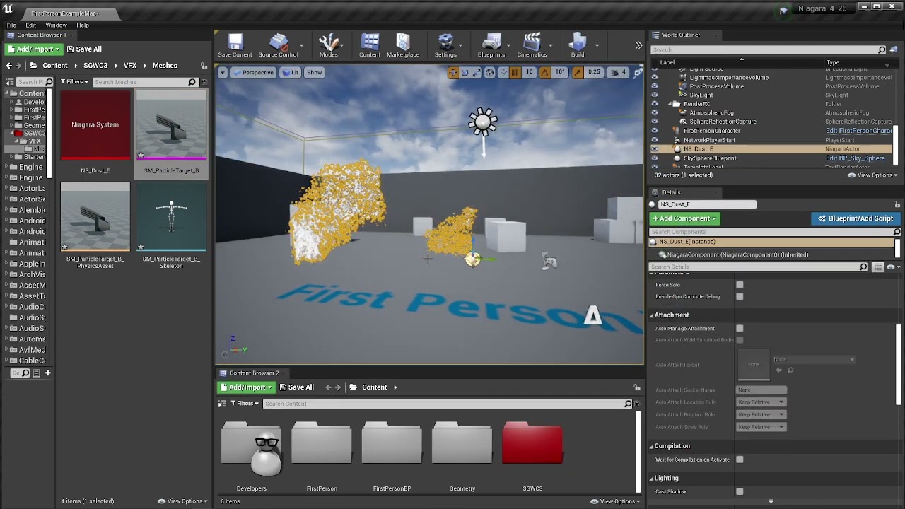 Drag the system into your level, drag a skeletal mesh into the level.