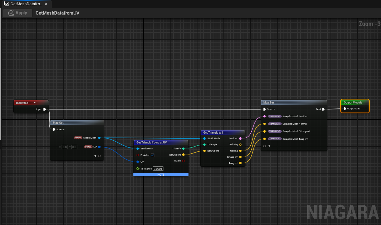 So I got a task to create a Niagara particle system of meshes that float on a river spline Blueprint. So I kind of got something on a straight spline, but on downhills the meshes go off a bit and don’t stick to the river because they go along the spline tangents and not the mesh ones. I can’t fully get the meshes stick to the surface of the river (river mesh). The river mesh has turned off distance field so that option is off, I also tried sticking it to the mesh UV that watched from a tutorial from Tharle but the particles attached only on the start or first plane of the spline not the whole spline and also only on one side of the river plane. It might be that the plane is mirrored in the BP, but I’m not allowed to touch the BP :S Any Ideas or other way this might work with?
