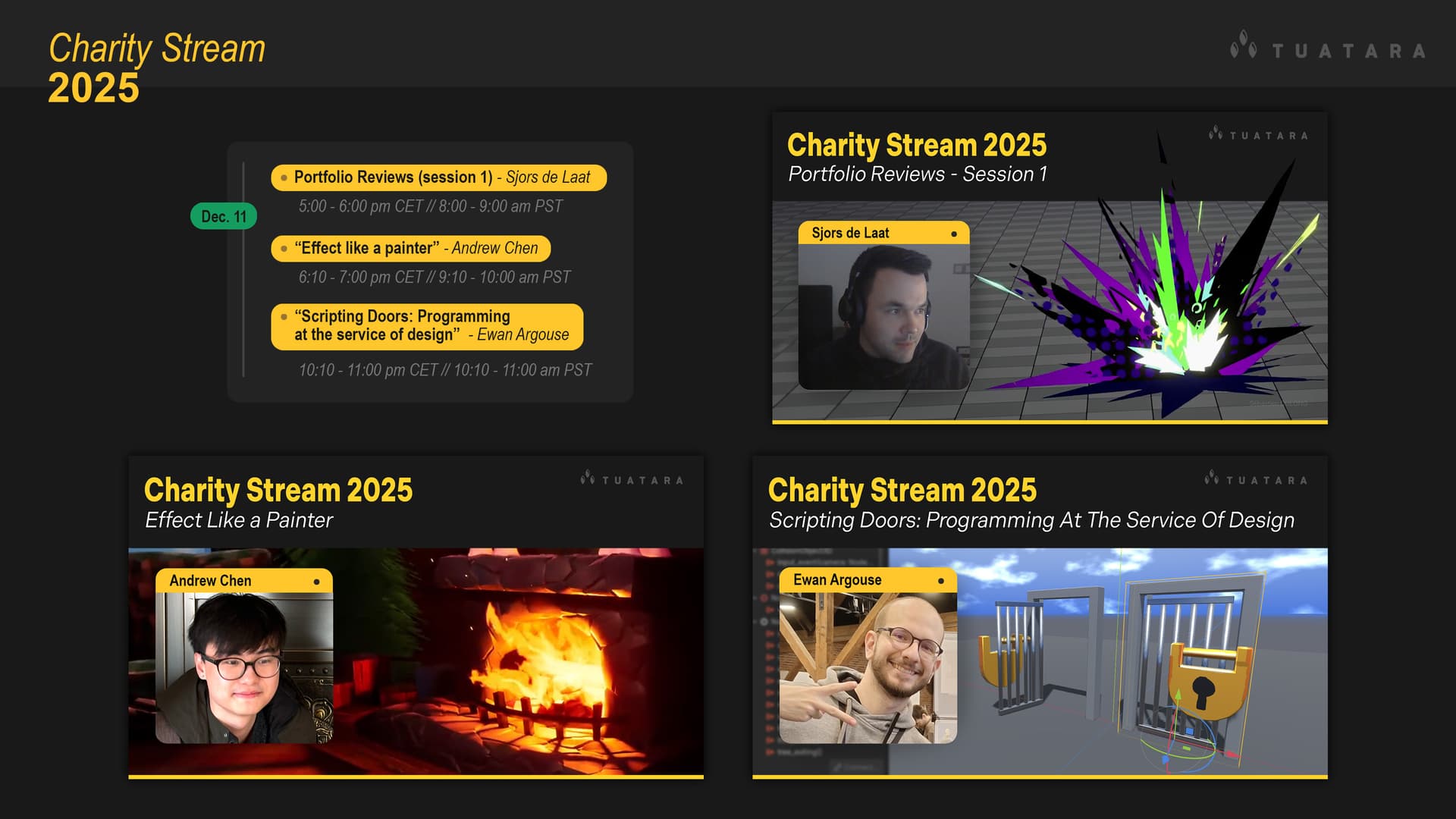 At Tuatara, we would like to share that next week we’ll be live streaming over 7 hours of free realtime VFX lectures to promote Child’s Play Charity, a charity that improves the lives of children through the power of play. We’ll announce a full schedule later this week!