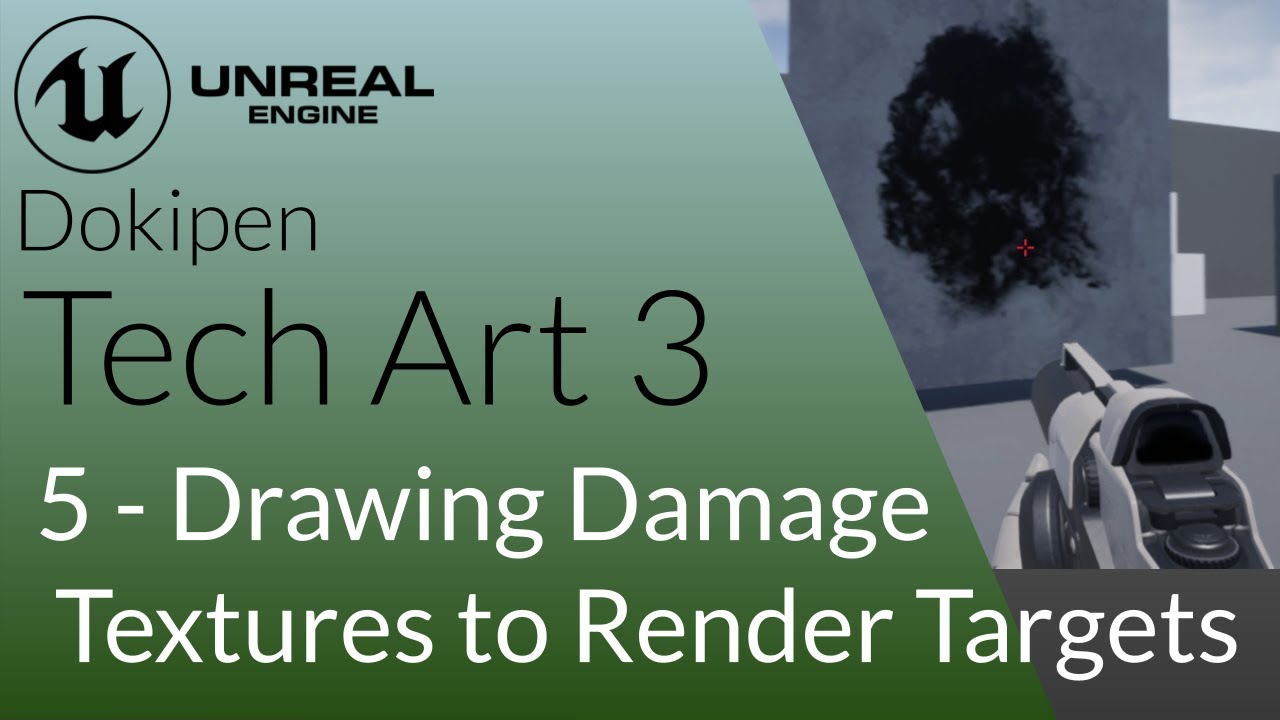 Part 3 is a dynamic damage accumulation system that uses render targets to store damage blast hits that build up over surfaces. Also use blueprints to track which objects have been hit and only create a render target per object that has the appropriate resolution.