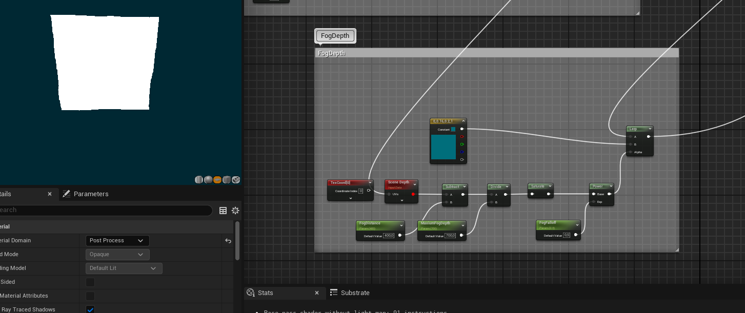 So I am currently working on an underwater scene, experimenting with creating a post-process material to get the underwater look, using scene depth to create a custom fog for the water!