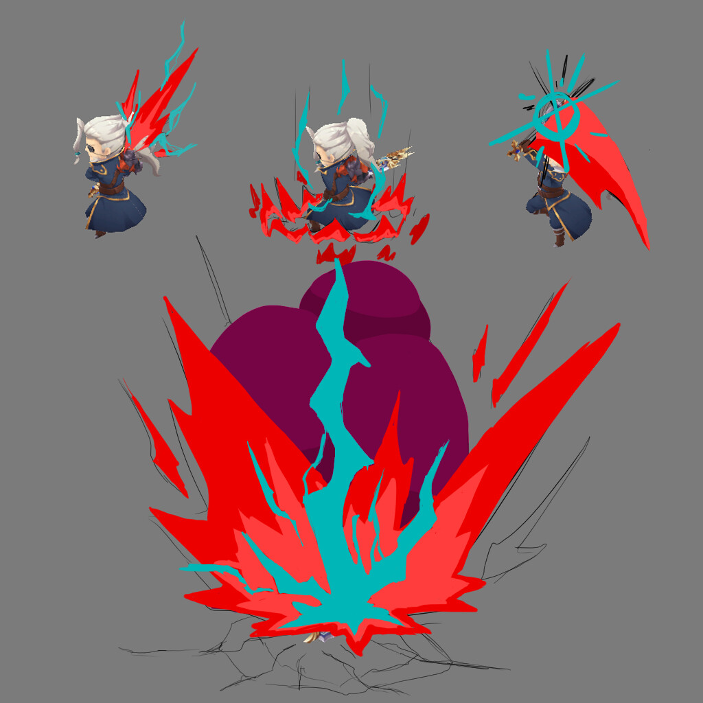 Want it to be a sort of red energy with electric blue to go with it. And then i added smoke at the end to give some longer lingering effect after the initial blast.