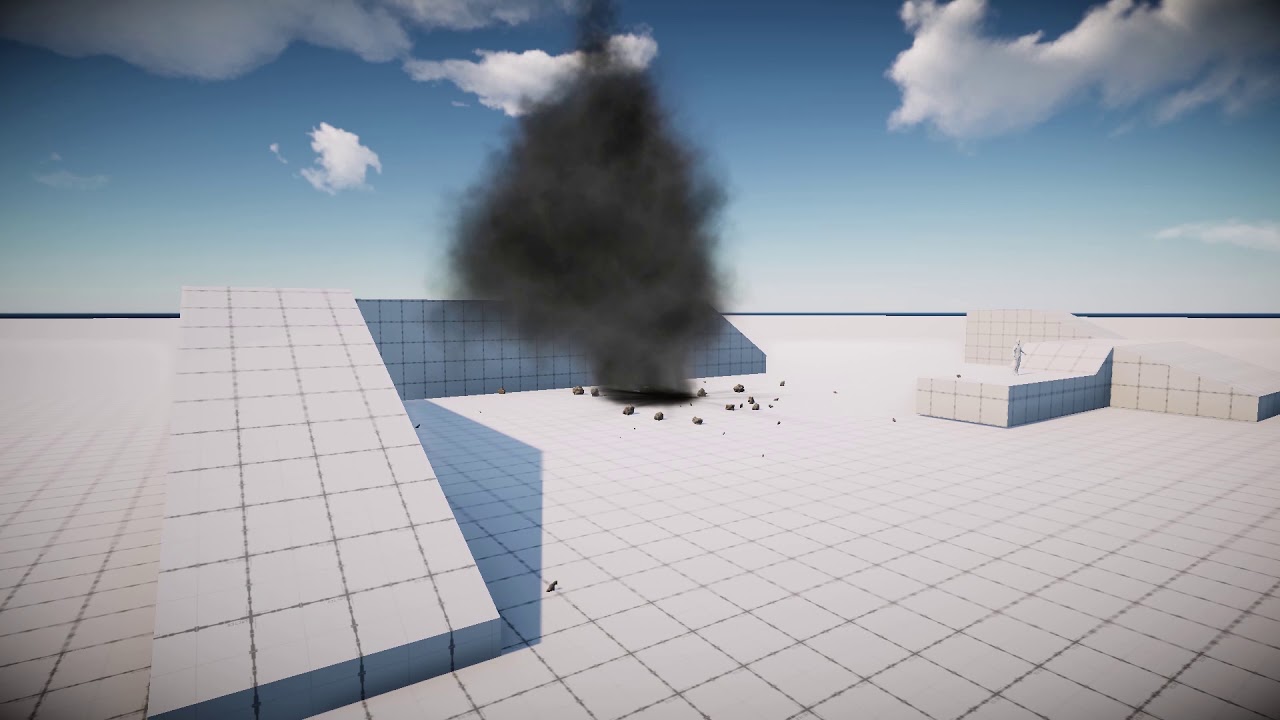 Hi @sebastianXY, thank you so much for your suggestions… So, I got a reference and tried to built it differently… I have a main explosion from the ground up, two secondary ignition and a small cone of smoke in the final part…